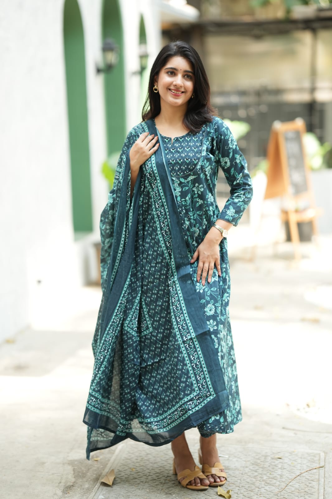 Kaveri - Red Blue Ajrakh Maxi Nighty