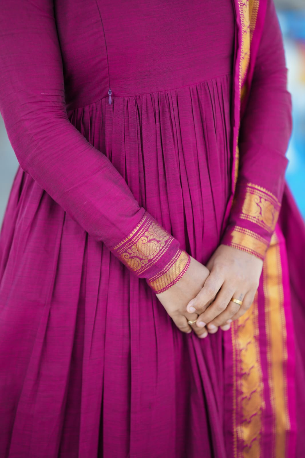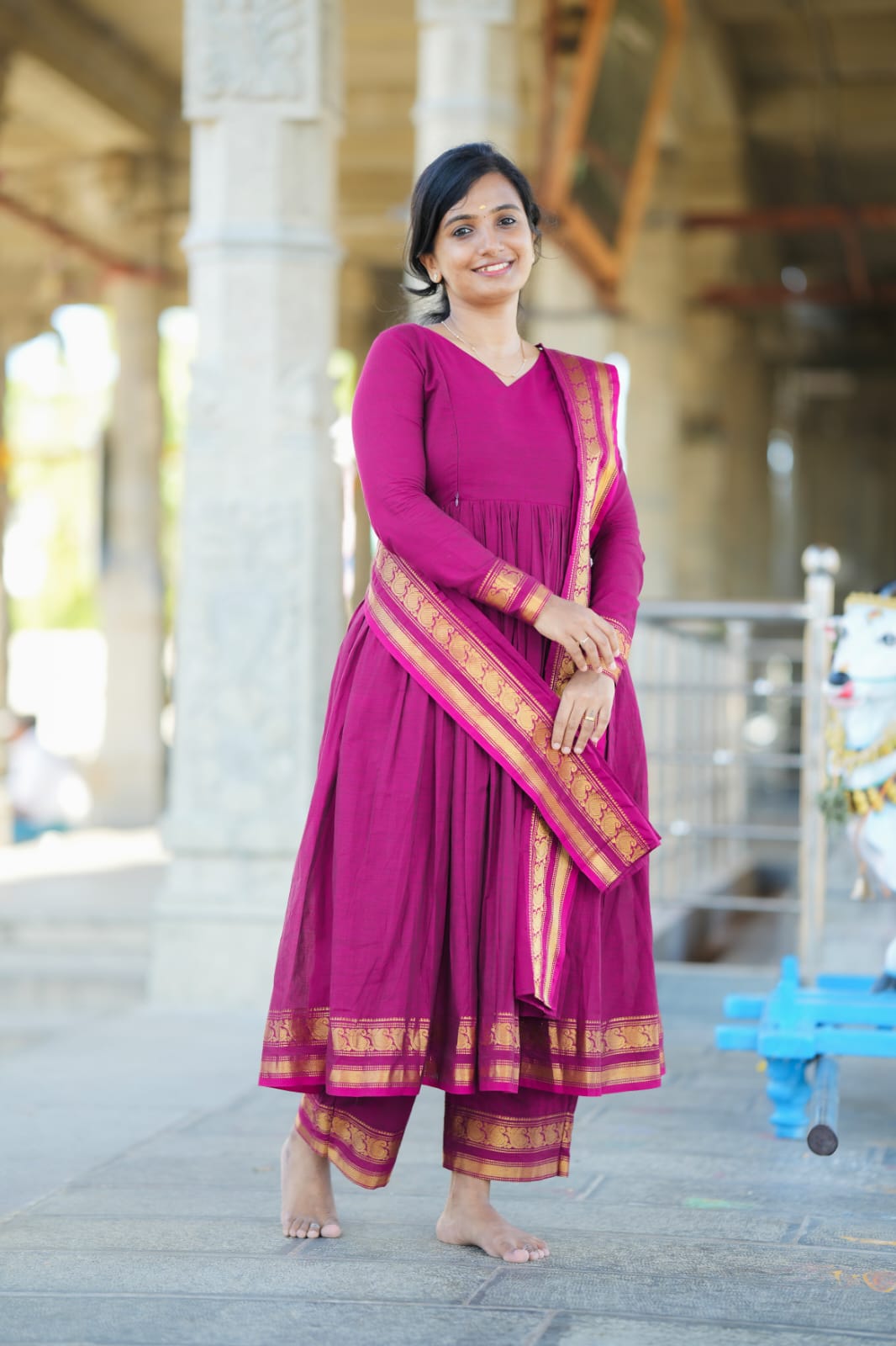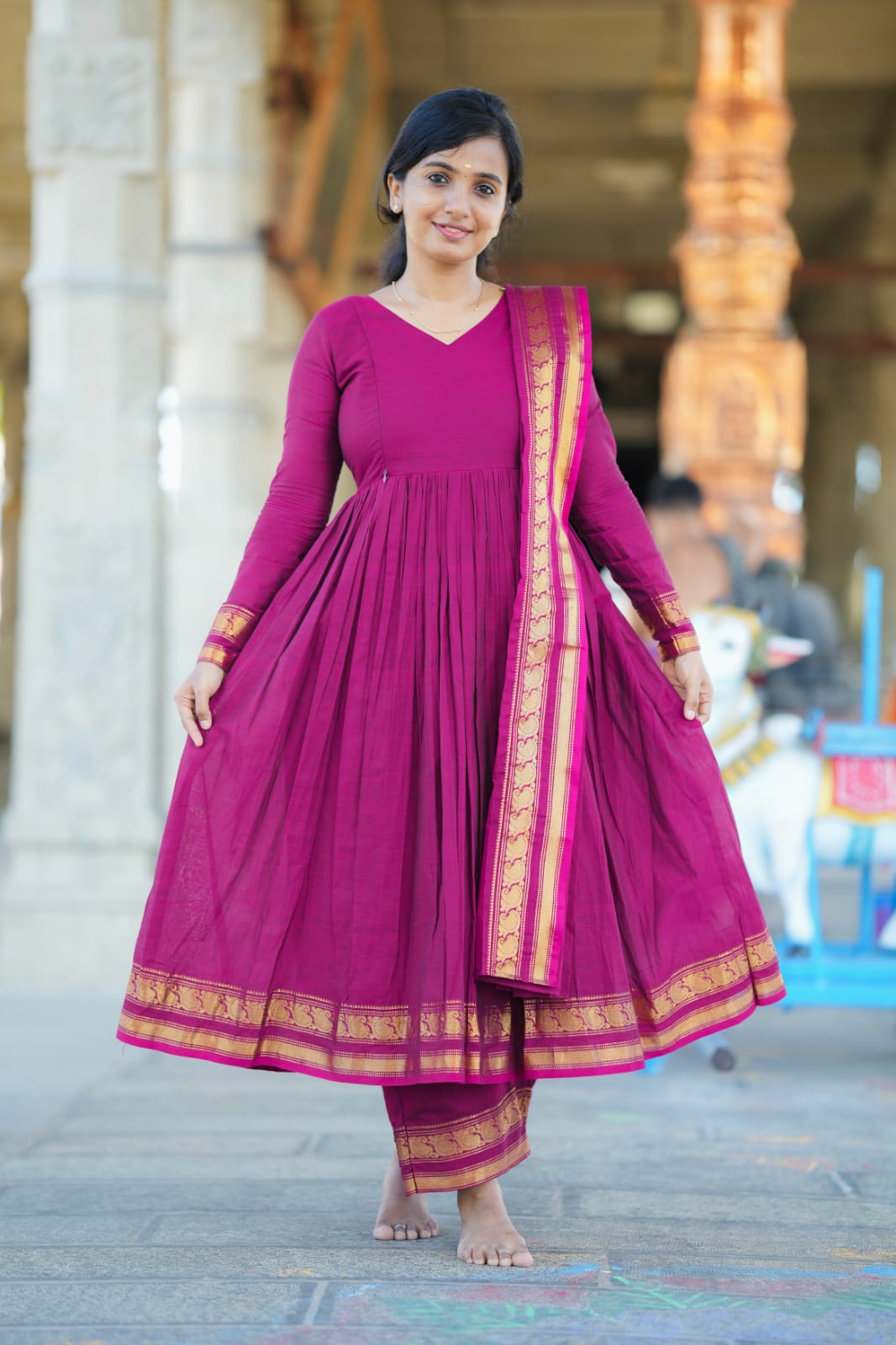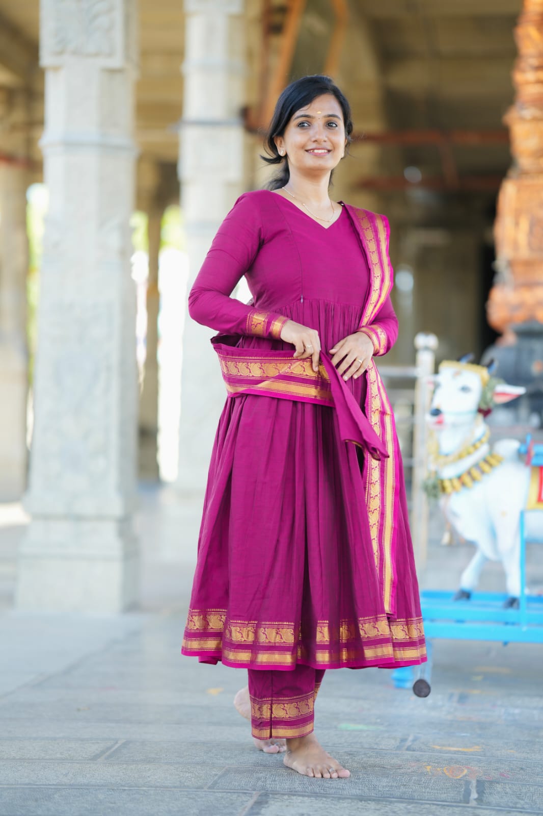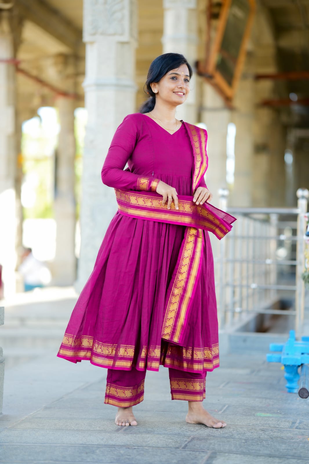 Chandrika – 3pcs Anarkali Set is a graceful 3-piece ensemble featuring a rich beetroot hue, full sleeves, and delicate waist pleats that add an elegant flow to the silhouette. Crafted with full lining in both kurta and pants for a premium finish, it comes paired with straight-fit pants and a matching dupatta. Designed to blend vintage charm with modern comfort, Chandrika can also be customised with a discreet feeding zip, making it both timeless and functional for every occasion.